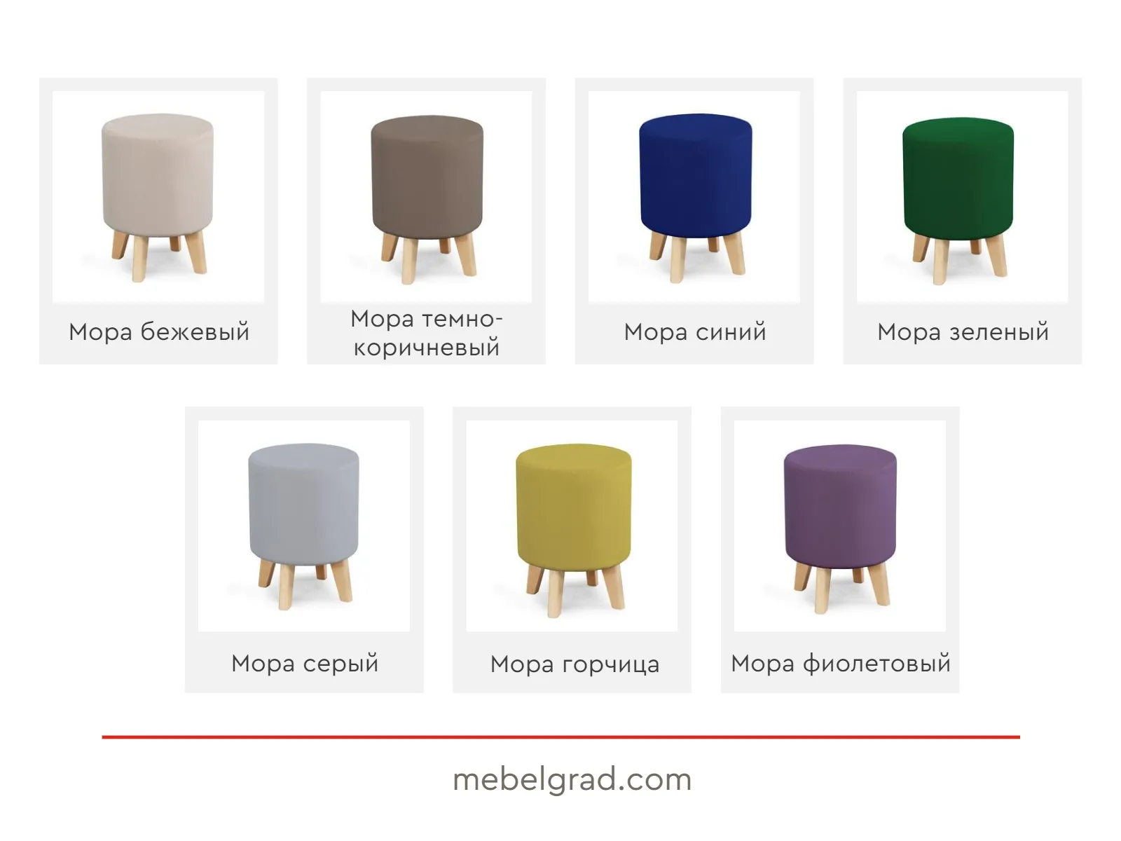 Круглая банкетка на ножках - это удобный и стильный предмет мебели, который может быть использован как место для сидения или как прикроватный пуфик. Она выполнена из ткани, что позволяет ей быть мягкой и удобной для сидения.