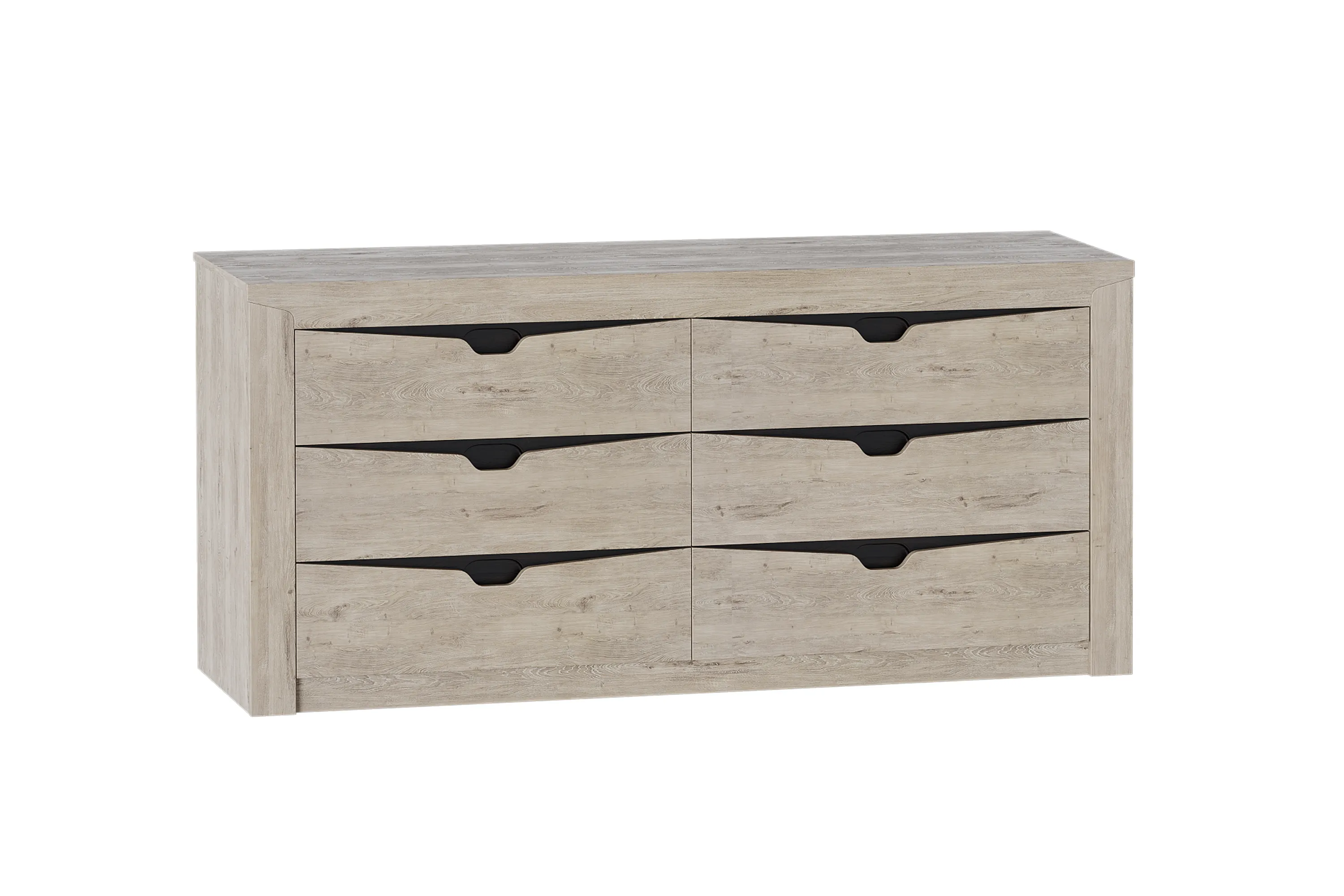 Комод "Соренто" идеально подойдёт для спальни и станет прекрасным дополнением к вашему интерьеру. Шесть вместительных выдвижных ящиков на шариковых направляющих позволяют хранить множество вещей, таких как одежда, белье, аксессуары. В фасадах ящиков имеются декоративные вырезы, выполняющие функцию ручек в цвете кофе структурный матовый.