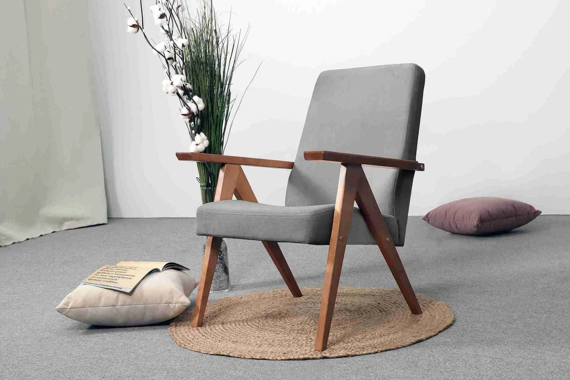 Кресло имеет простой и элегантный силуэт. Оно выполнено в уникальном ретро дизайне и доступно в нескольких цветовых вариантах, что позволяет выбрать наиболее подходящее для вашего дома.