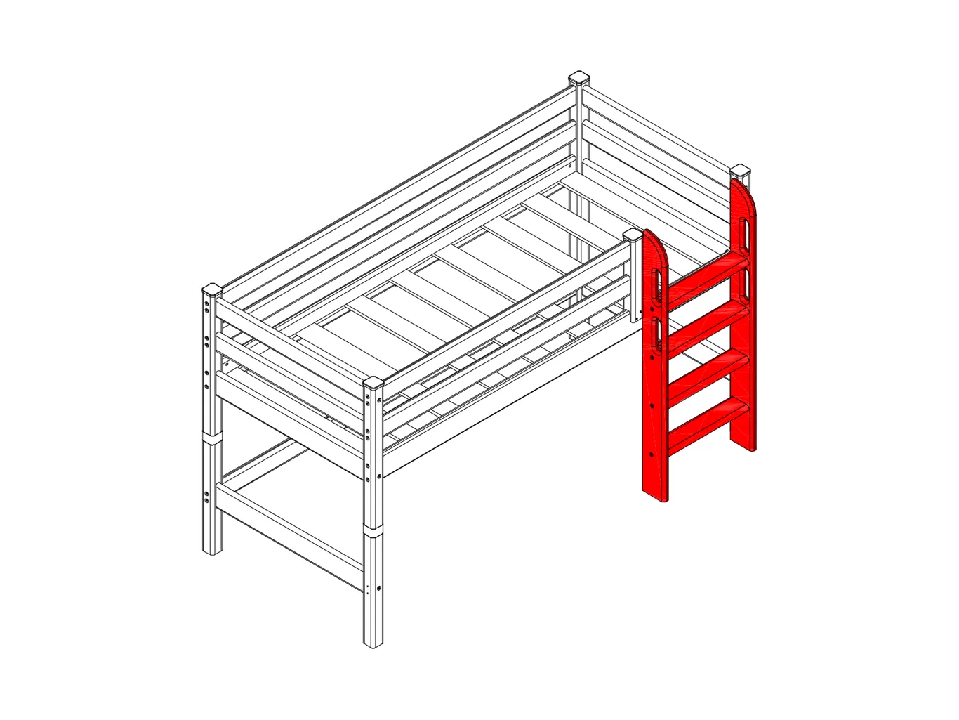 Пакет №13. Прямая лестница для низкой кровати “Соня” обеспечивает легкий и безопасный доступ к кровати, помогая ребенку чувствовать себя уверенно и комфортно.