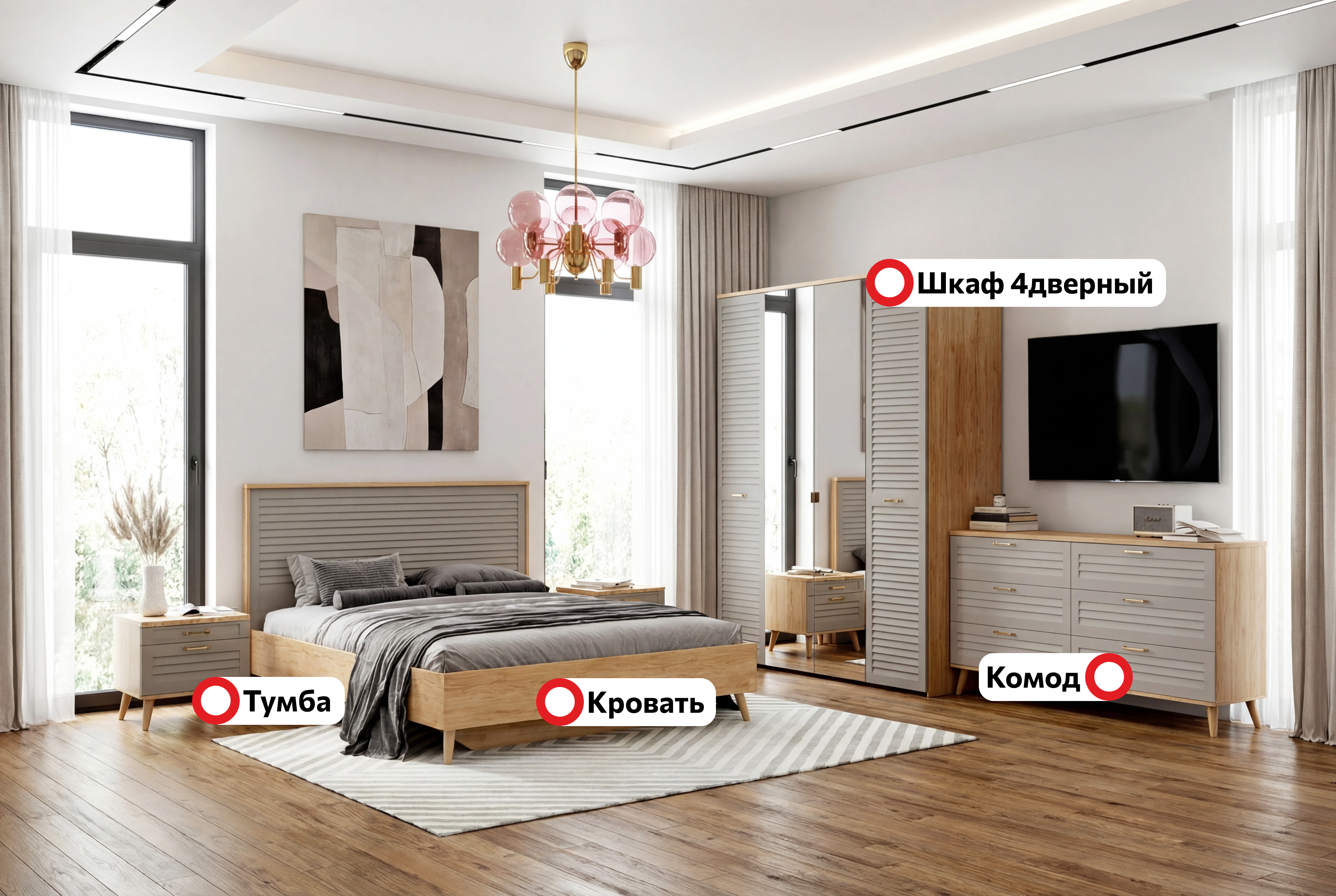 Шкаф четырехдверный "Гавана" спальня Светло-серый Шкаф четырехдверный "Гавана" спальня Светло-серый