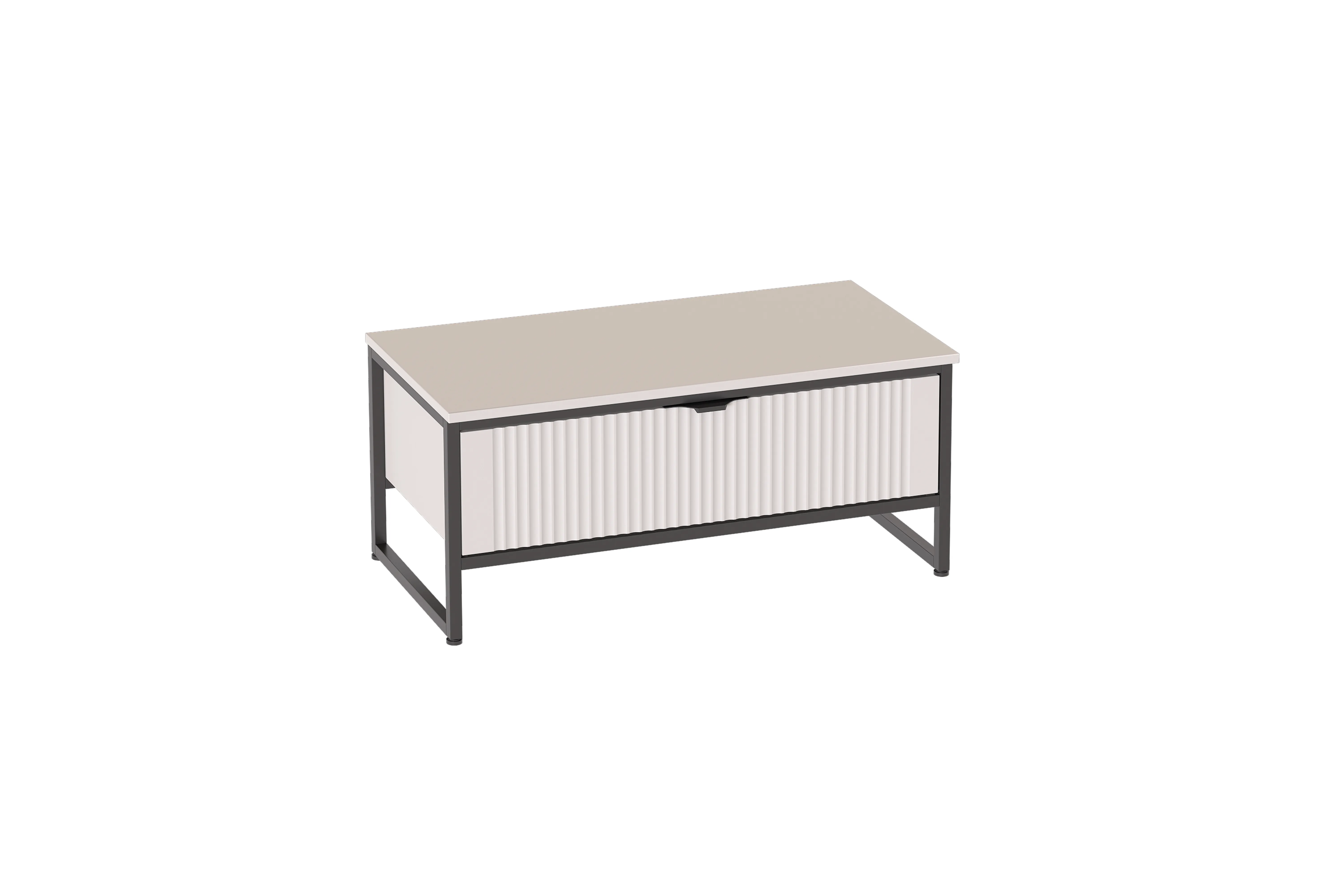Тумба "Нора" состоит из несущего металлического каркаса и закрепленного к нему корпуса из ЛДСП , внутри которого установлен выдвижной ящик на шариковых направляющих с доводчиками.
