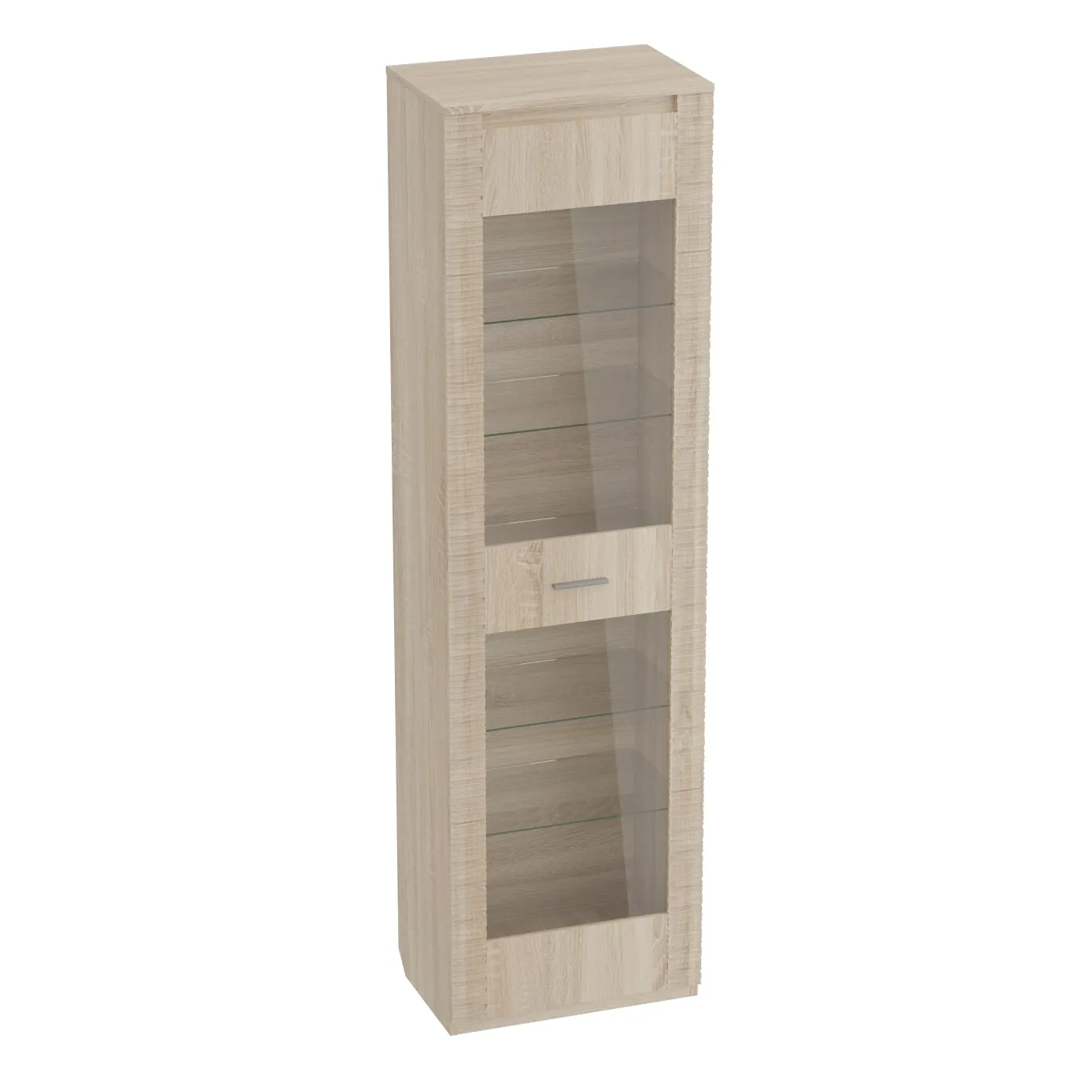 В витрине за общей стеклянной дверцей располагаются выдвижной ящик, четыре стеклянные и одна жёсткая полка. Четыре светильника «HLT Prismatic FT» для подсветки полок и блок питания в стандартную комплектацию не входят и приобретаются отдельно.